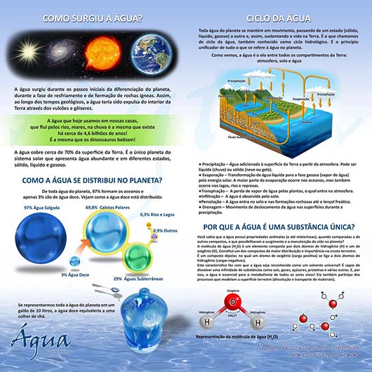 Painel explicativo sobre o surgimento da água