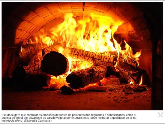As emissões de poluentes pela queima de lenha em pizzarias e de carvão vegetal por churrascarias e sua participação no total das emissões pela queima de biomassa na Região Metropolitana de São Paulo, contudo, não estão quantificadas e, consequentemente, não têm sido consideradas nos inventários de emissões de poluentes na metrópole, apontam os pesquisadores.