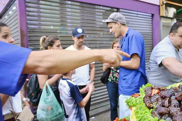 A coisa toda gira mesmo em torno das ofertas de degustação de todo tipo de frutas expostos nas bancas junto a pequenas placas com os preços identificados por quilo de cada produto. O paladar, o olfato e o olhar voam alto diante dos perspicazes vendedores. A cada resposta de espanto diante do sabor oferecido graciosamente as chances de ser levado pelo ‘amigo do alheio’ vai aumentando.