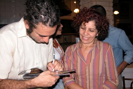 René Muringa (voz) autografa CD Lab SZ para a fã Bernardeth Oliveira